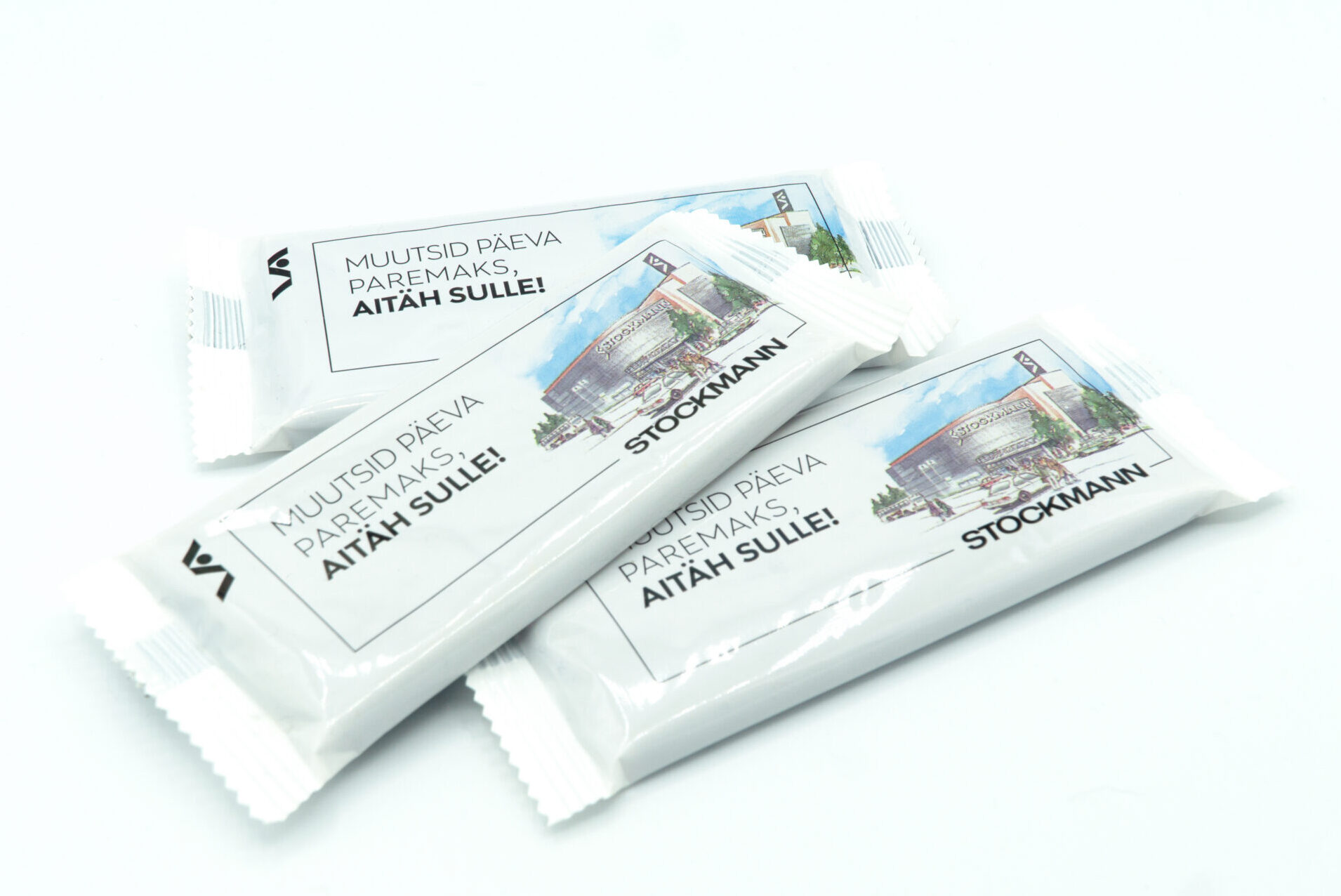 ettevõtte kujundusega sokolaadid flowpakendis